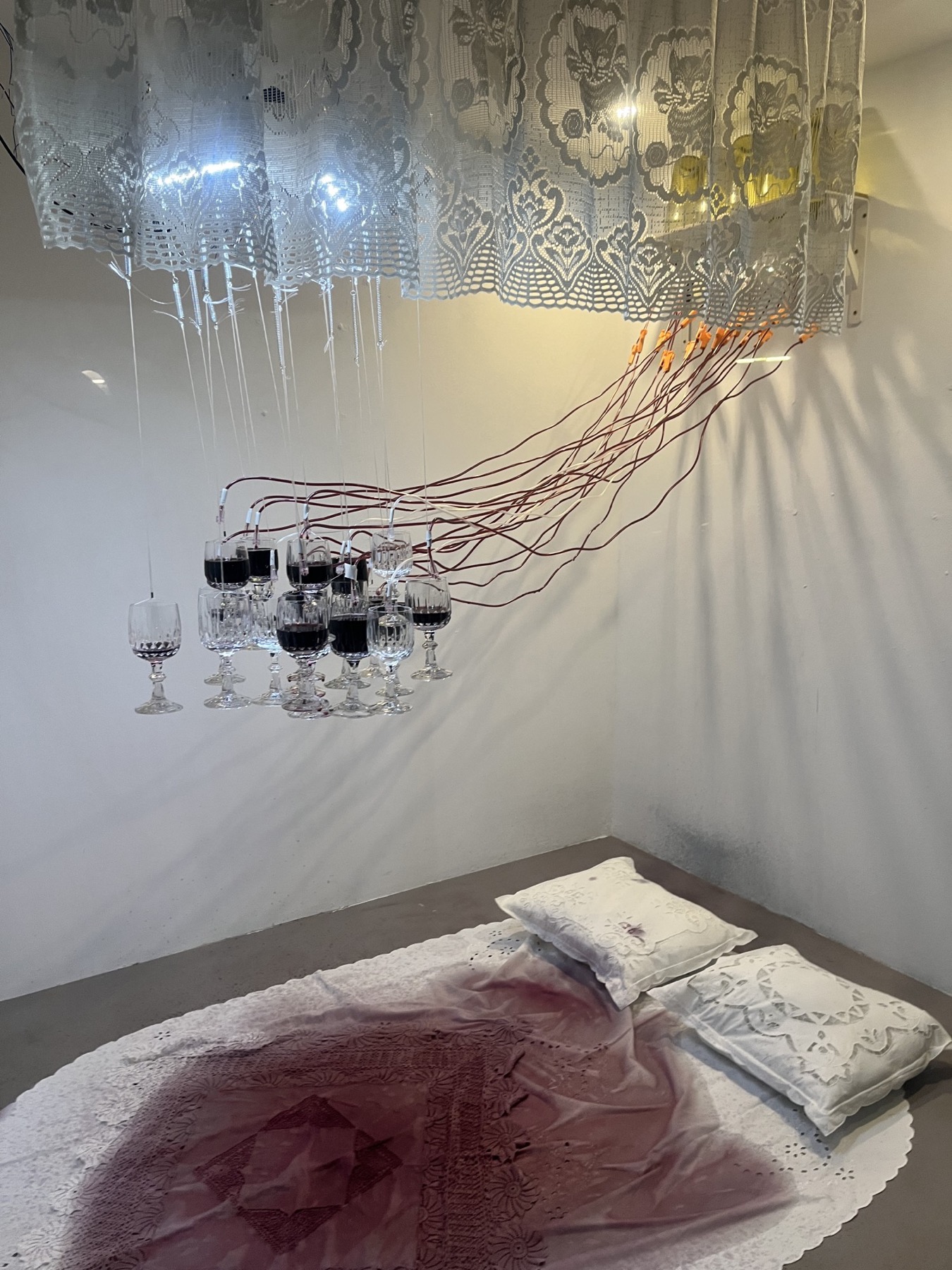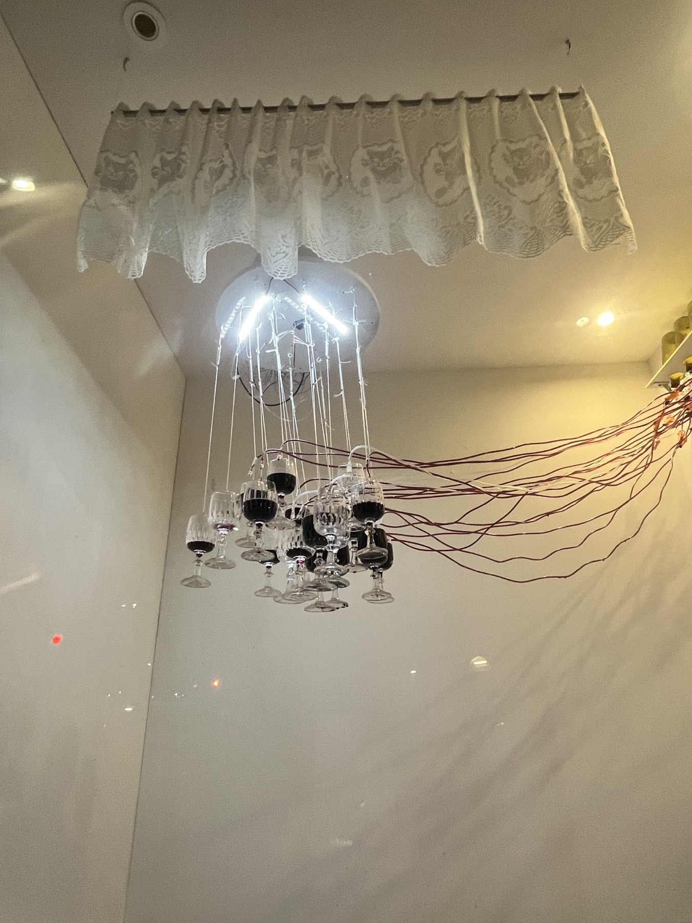 Within a system, something affects another thing and this affects something else. This then continues over and over again. Seeking cause-and-effect relationships occupies, brings some people together and others ever further apart. Meanwhile, it continues over and over again. The installation Ergo Bibamus is in constant motion - within its given framework. Will anything unforeseen happen during the course of the exhibition?