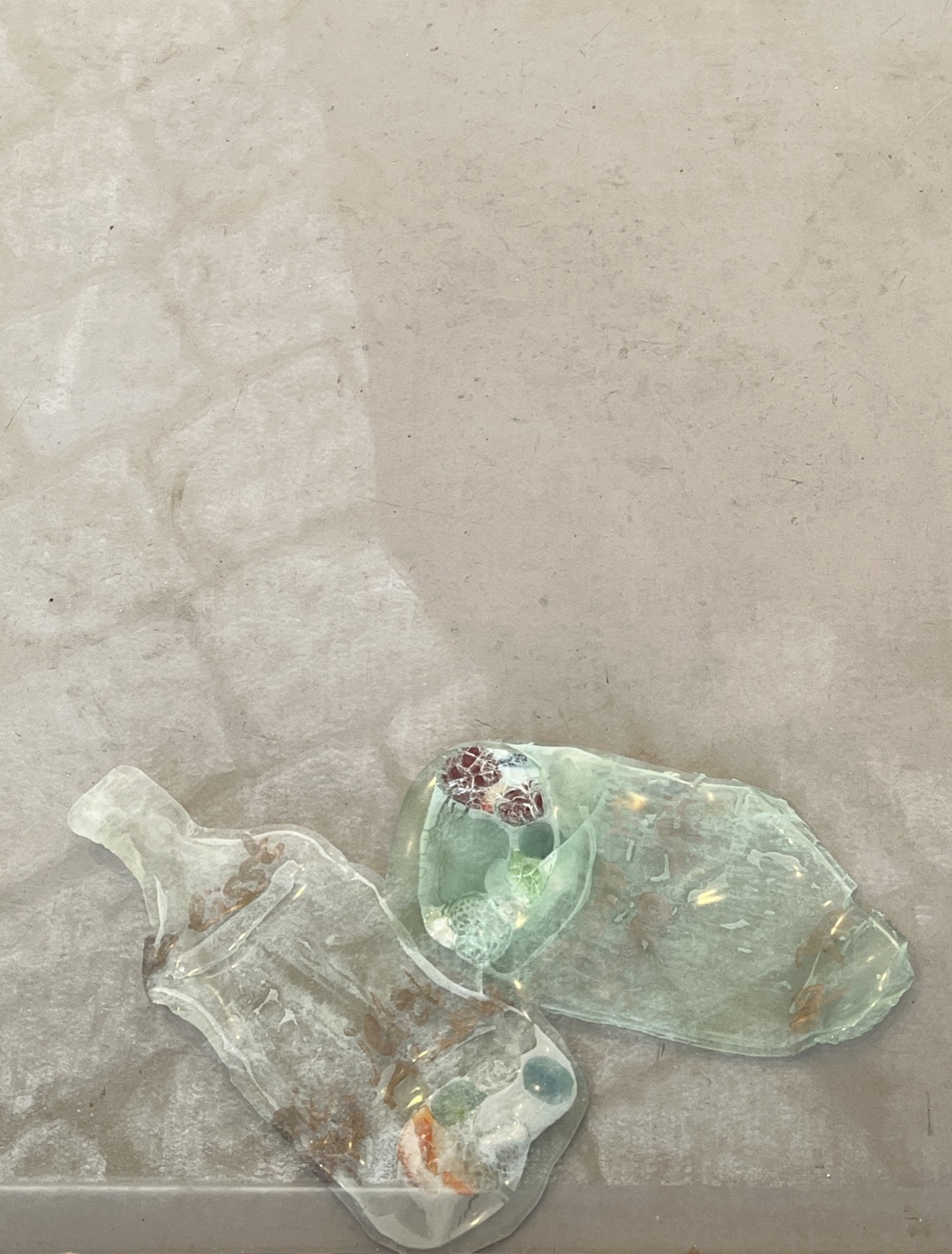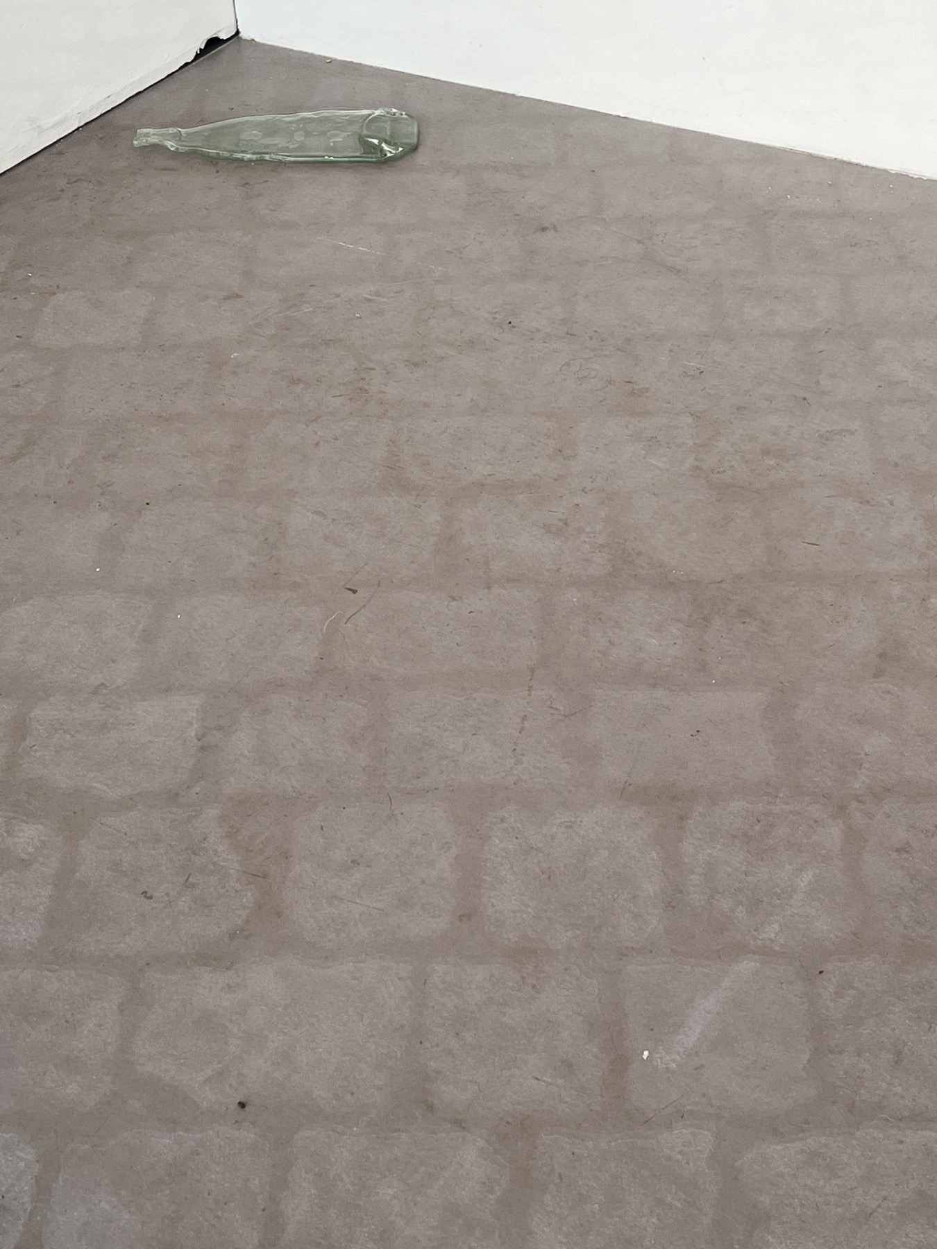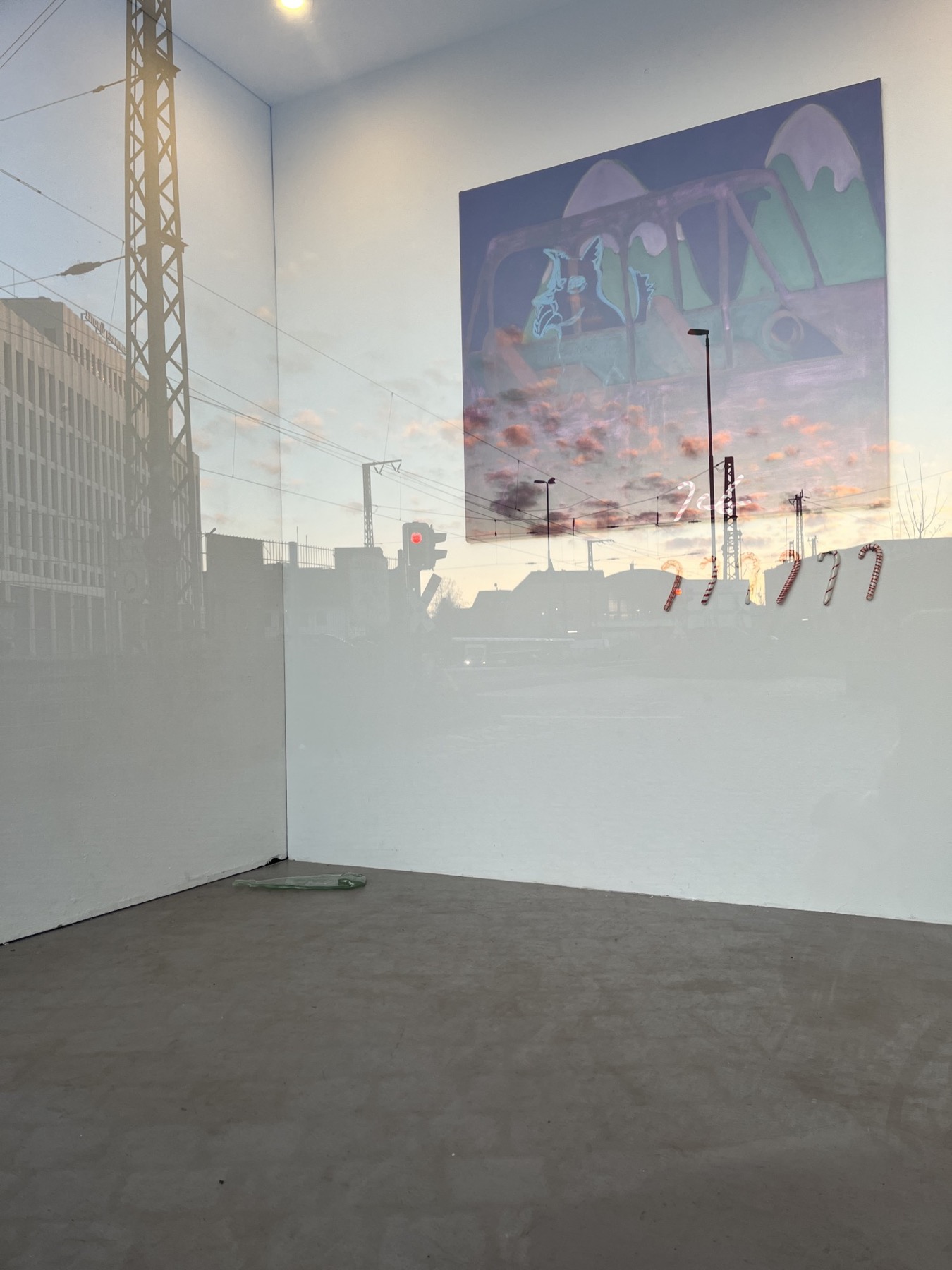 Baci (La Romantica) verbindet deutsche Sehnsüchte des dolce vita mit Spieltrieb, Realitätsverweigerung und Rausch. Mit dem Auto über die Alpen fahren und unter der Sonne Italiens frei sein, den Job bei Porsche für die 21 Urlaubstage vergessen. Sich im Hotel betrinken und am nächsten Tag dann etwas unternehmen, das auch den Kindern Spaß macht, vielleicht an den Strand gehen. Vom Dasein als Filmstar träumen und die nächste Flasche Wein entkorken. Sagen: „Ist das Wetter nicht herrlich?“ / „Ist das Wasser nicht blau?“ / „Ich leg mich erstmal in die Sonne.“ All das ist nicht mein Leben, aber fühlt sich manchmal so an. Auch ich wäre gerne Anita Ekberg. Wie diese Träume sind auch die Objekte zerbrechlich und simpel. Die leeren, flachen Flaschen sind Reste einer Konsumorgie, die Zuckerstangen wie ein Versprechen. Die Gedichte, die aus nicht verwendeten Werktiteln bestehen, behandeln ebenso Dissoziation und Eskapismus. Zusammen mit den Ölbildern ergeben sie eine Erzählung, die nur aus Fantasien besteht, aus Erinnerungen und Wünschen. Das Schlaraffenland hinter den Bergen lockt.