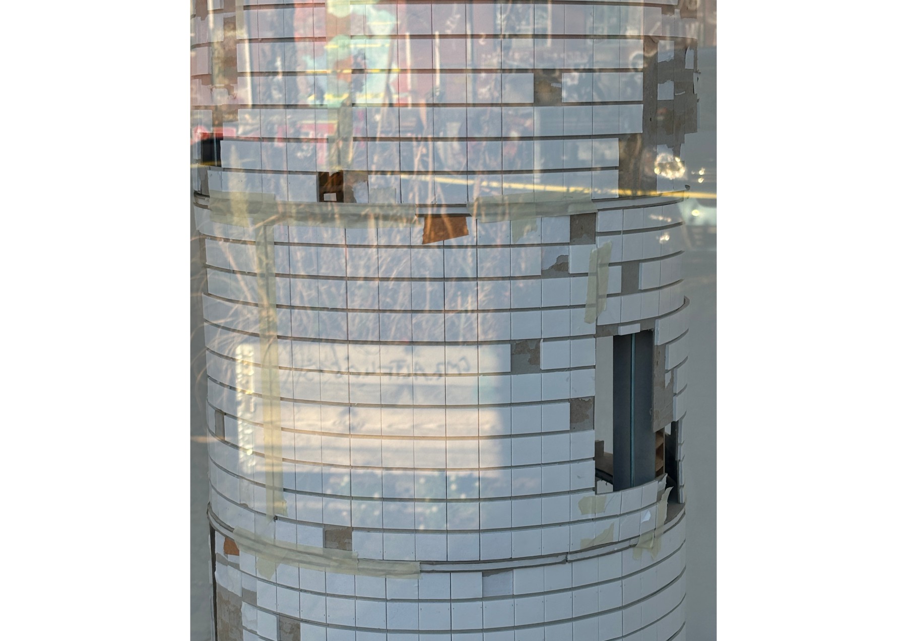 Im Prozess der Re-Übersetzung bisheriger Installationen entstehen im Modellraum Risse, Idealisierungen und Maßstabswechsel. Die keramischen Objekte vergrößern sich zu monumentalen Formen, die abgestreifte Hülle einer Säule wächst zu einem Turm heran, und auch der Container selbst weitet sich zu einem großen White Cube aus.