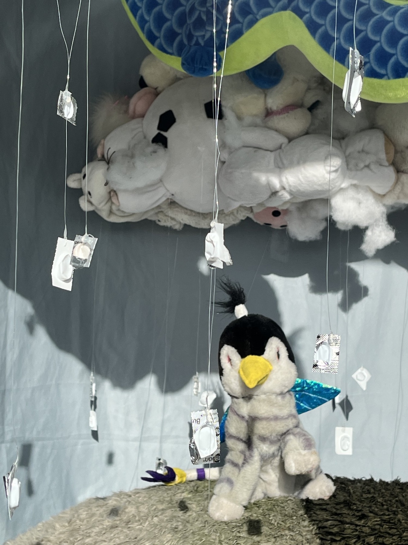 In dieser Arbeit sind Stofftiere in Verbindung mit einer Endometriose Erkrankung entstanden. So wurden die LOST TOYS zu einem kreativen Ventil und einer Beschäftigung, welche unter Schmerzen und aus dem Bett heraus umsetzbar war. Krankheit führt oft zu Rückzug. Es geht, um die Auseinandersetzung mit dem Gefühl des Getrennt-Seins und um den Versuch durch die Stofftiere eine Verortung zur Welt herzustellen. Kuscheltiere sind für Kleinkinder Übergangsobjekte, sie helfen den Schmerz über den Verlust, keine Einheit mit der ersten Bezugsperson zu sein, zu verarbeiten. Ein Stofftier tröstet uns über diese erste Trennung und kann Teil des Kindes und dessen innerer Welt werden, wobei es als Objekt gleichzeitig ein Teil der Außenwelt bleibt. So stellt es eine Brücke dar, welche uns die Möglichkeit gibt, eine Verbindung zur Außenwelt aufzubauen. Dies sind die ersten Schritte zur Entwicklung des eigenen Selbst.