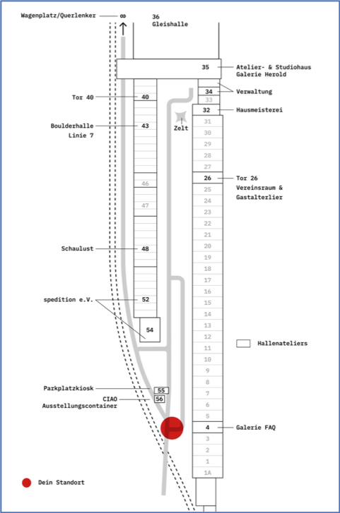 Der Parkplatz des Güterbahnhofs (gebührenpflichtig; 4€ pro Tag / 66€ pro