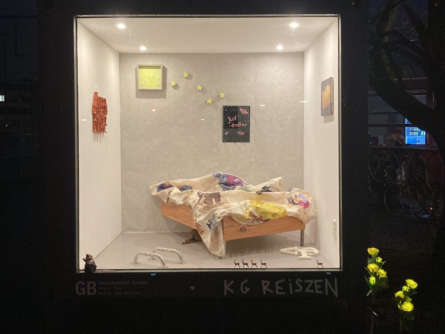 In der Ausstellung Fünf Sterne der Künstler:innengruppe KG Reiszen spielen Wiebke Mertens, Anne Moder und Sophie Meurer mit dem Charme von Einrichtungshäusern, dem Träumen von den eigenen vier Wänden und den damit verbundenen Vorstellungen eines Ortes, den wir Zuhause nennen.