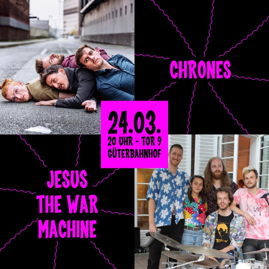 Chrones, die sich von den Rockbands der 90er/2000er Jahre (Nirvana, KoRn, Deerhoof, Pantera...) sowie von der rohen und organischen Ästhetik der Comics von Enki Bilal oder Berserk von Kentaro Miura inspirieren ließen, vereinen alle Urgewalten in einem brachialen Strom aus Saxophon, Schlagzeug, Gitarre und Bass.