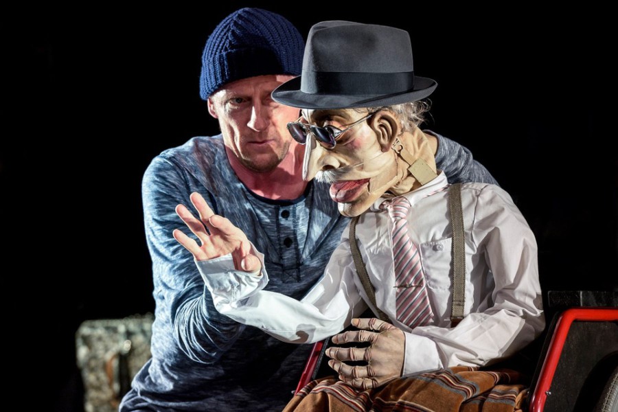 Es spielen Sebastian Kautz (Figurenspiel) und Gero John (Violoncello, Bandoneon)
