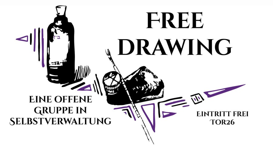 Bring deine Zeichenmaterialien selbst mit und zieh Dir etwas Warmes an, denn das Hallenatelier in Tor 26 ist ungeheizt.