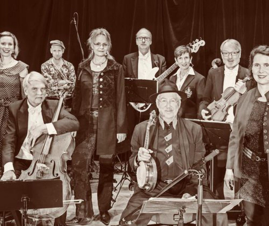 Mit dem Bremer Kaffeehaus-Orchester & Gästen: Julie Comparini, Evelyn Gramel, Manja Stephan und Katy aus dem Spring - Gesang, Erik Blumenthal - Gitarre, Matthias Entrup - Percussion, Willy Schwarz - Akkordeon und Gesang