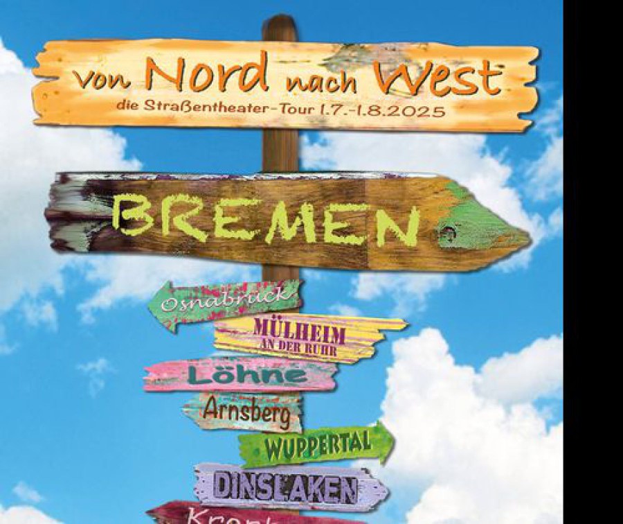 Alle Infos zu Von Nord nach West, der tourenden Straßentheater Werkstatt durch 9 Städte gibt es hier: https://www.nordnachwest.