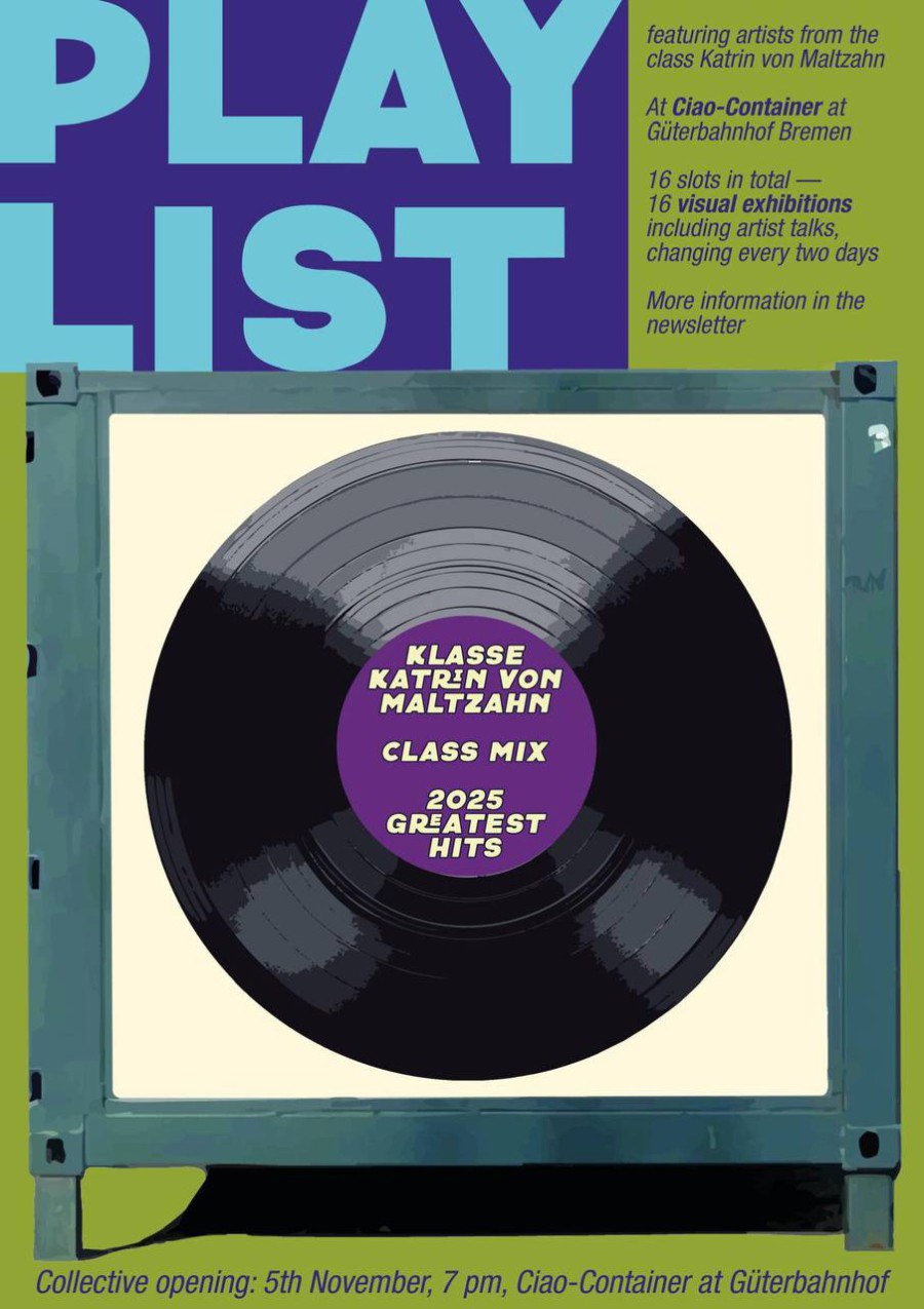 This group show features artists from a single class and takes place over the course of a month at exhibition container "CIAO" at Güterbahnhof Bremen.
