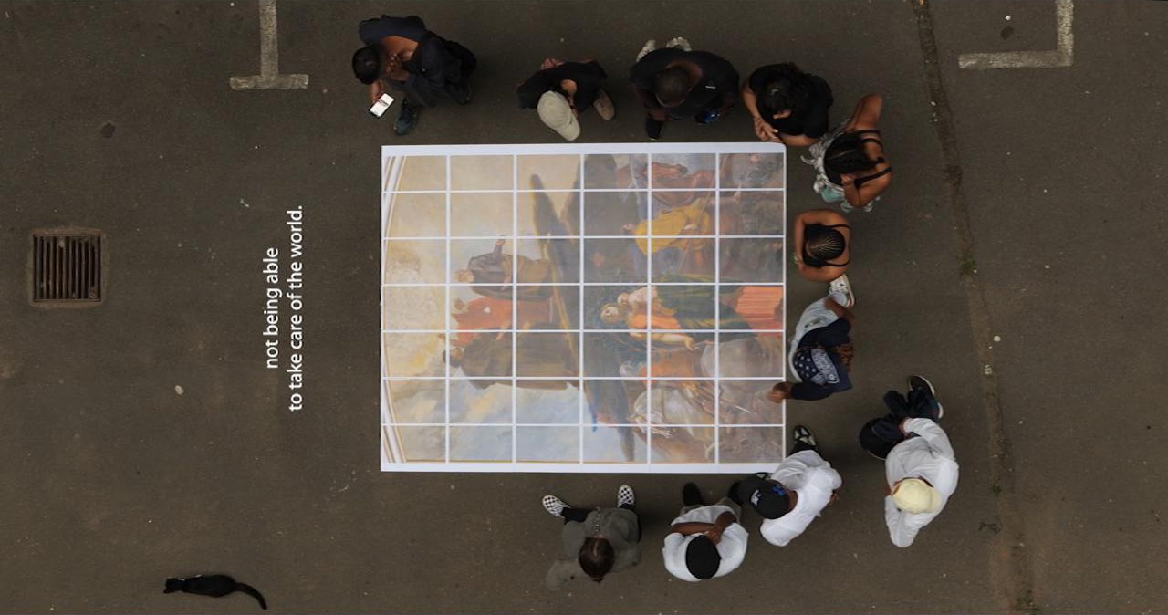 Installation, Video, Sound und Text und richtet den Blick auf die