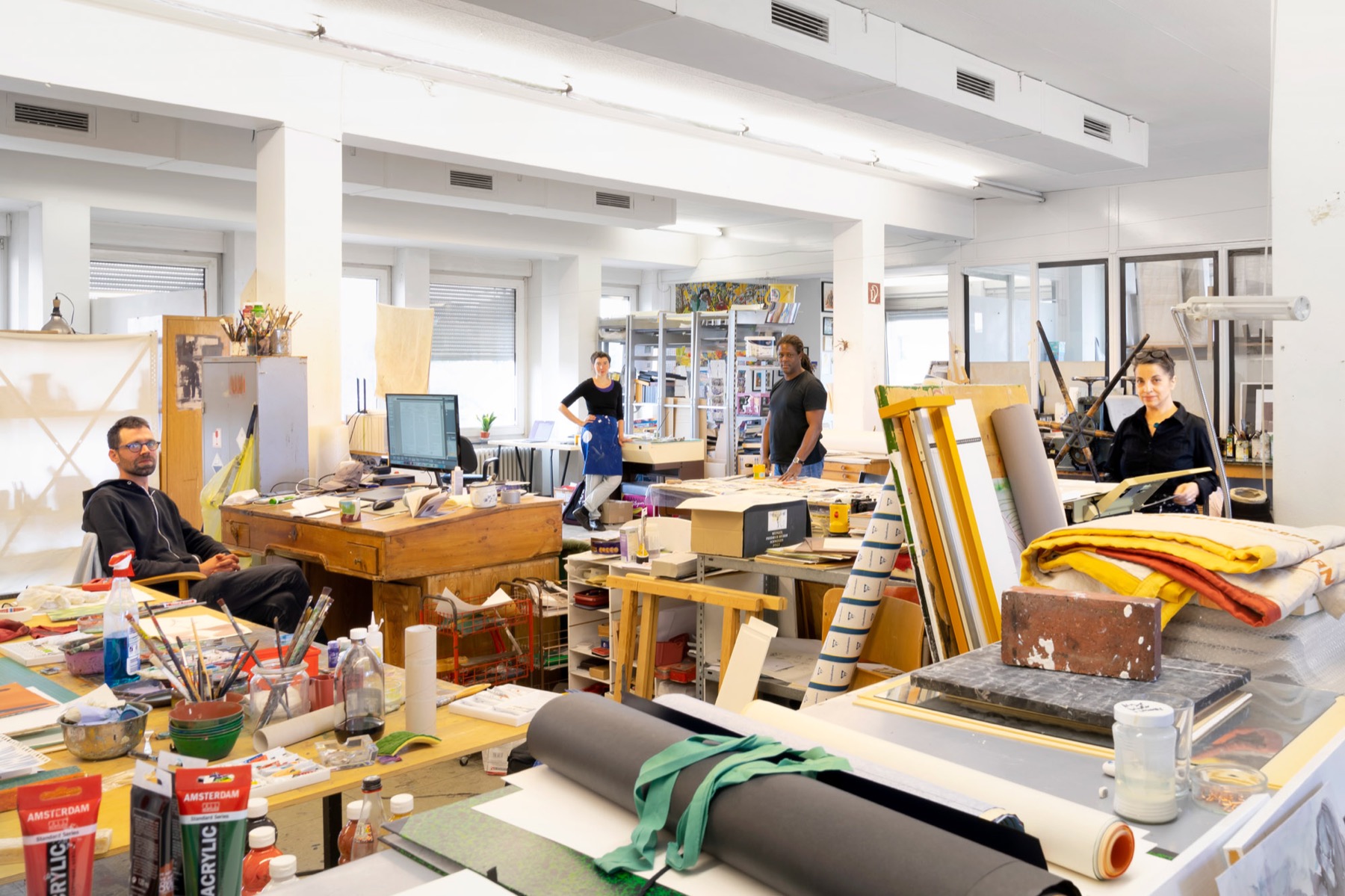 In den Ateliers und Werkstätten des Güterbahnhof Bremen arbeiten Bildende Künstler*innen, Grafikdesigner*innen, Gestalter*innen, Illustrator*innen, Modedesigner*innen, Fotografen*innen.