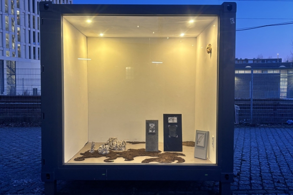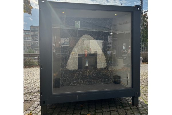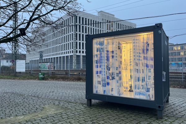 Ausstellungscontainer "CIAO" ist ein gemeinschaftliches Projekt von Akteur*innen auf dem Güterbahnhof Gelände. Die Ausstellung sind rund um die Uhr zu sehen. Der Standort des Containers findet sich auch auf unserer Karte.